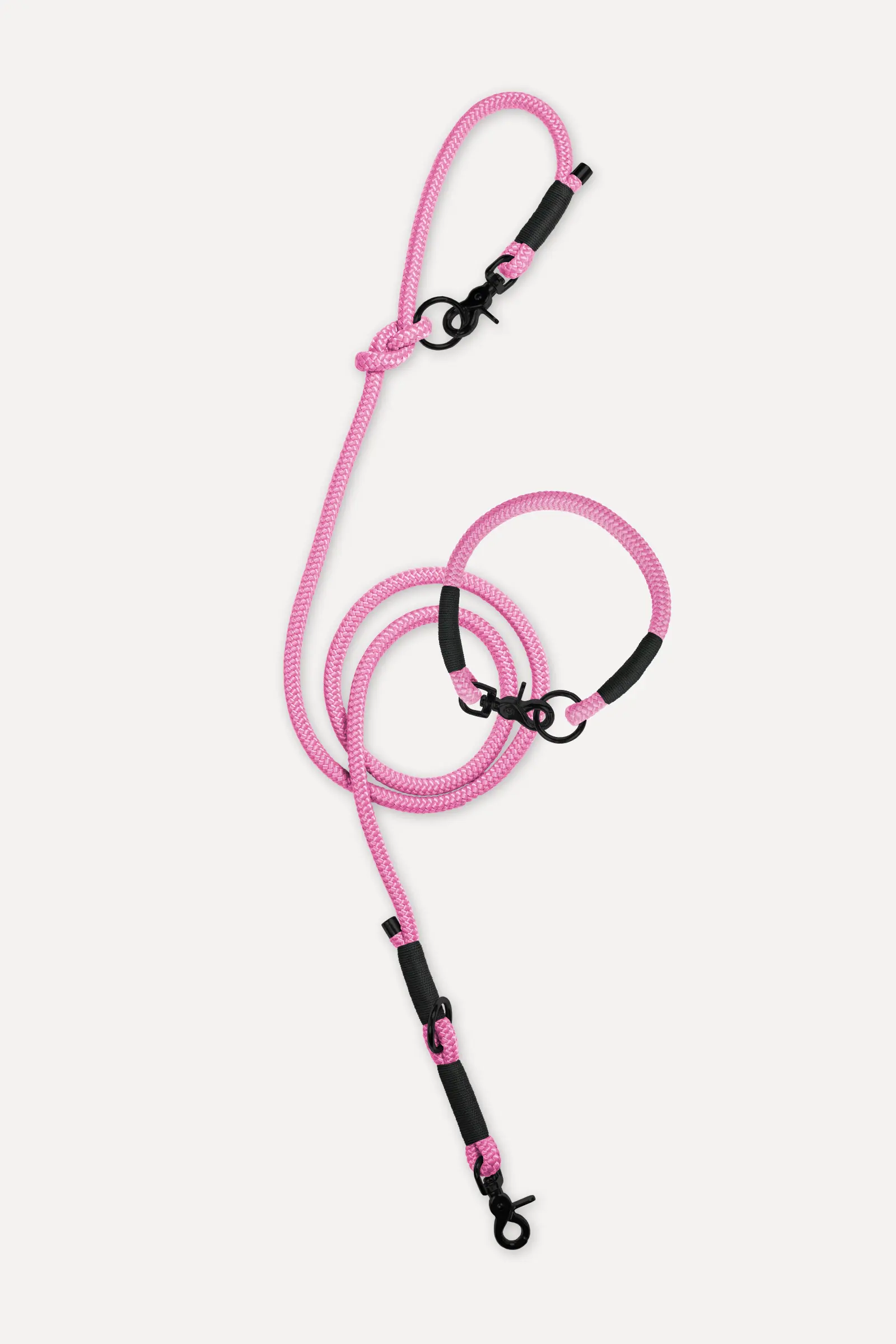 Hundeleine und Halsband aus Tau im Set · Altrosa × Schwarz