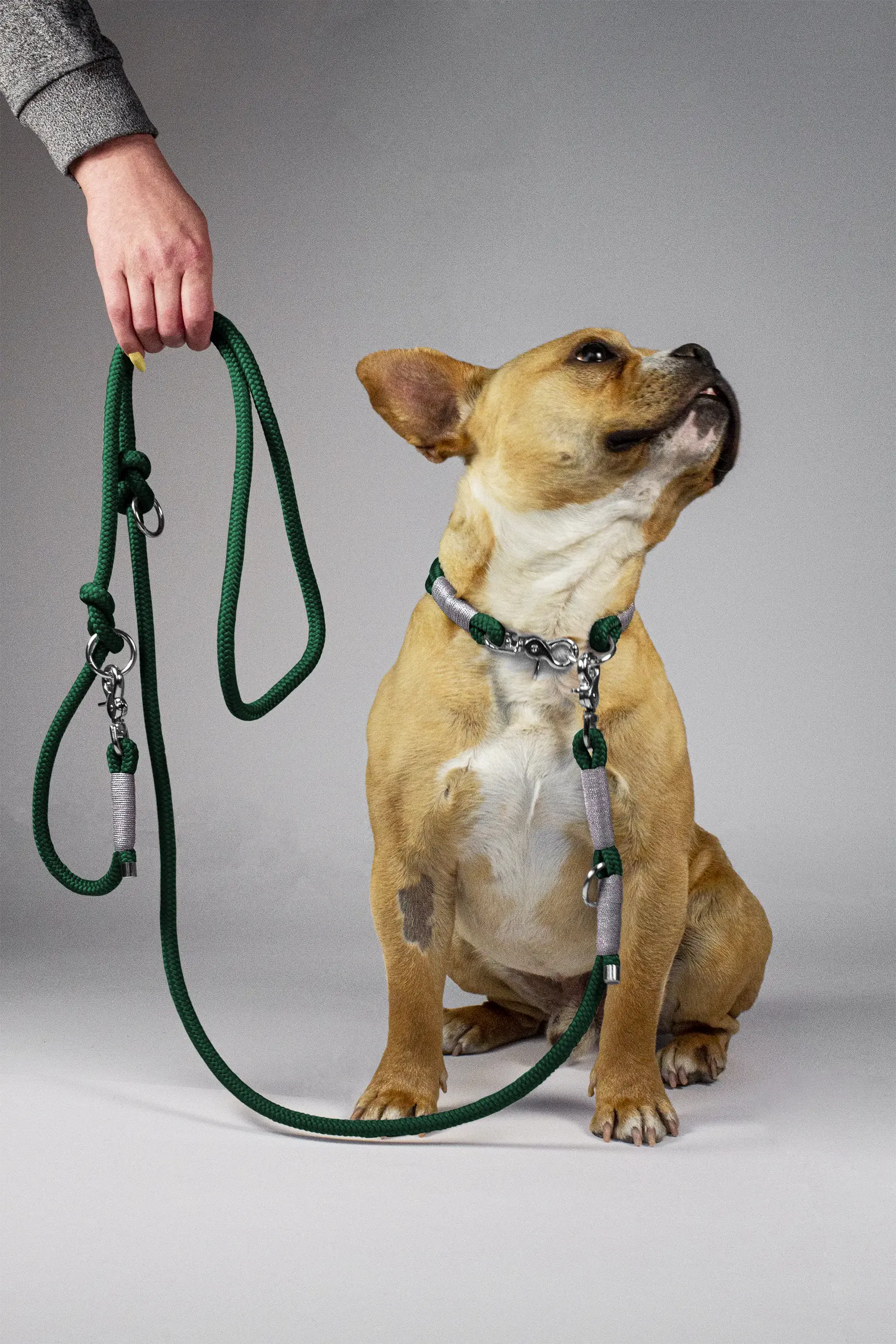 Hundeleine und Halsband aus Tau im Set · Tannengrün × Silber